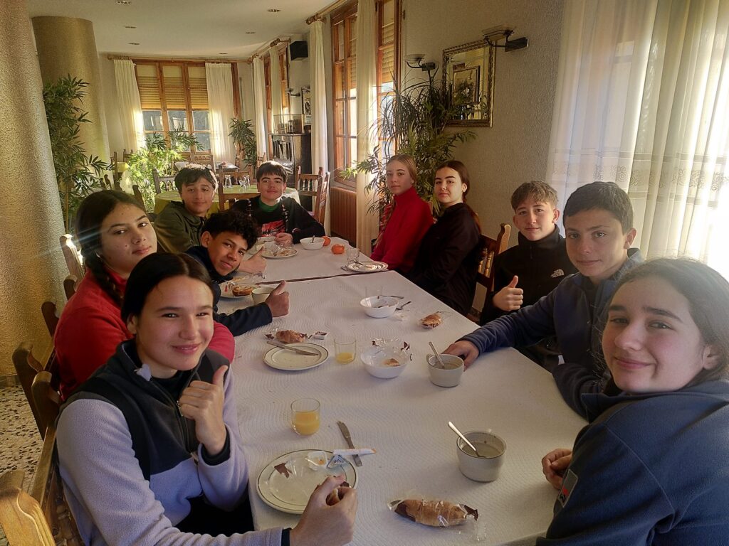 Desayunos para tomar energías y prepararse para días intensos de esquí bajo la atenta mirada de las montañas y monitores; juegos y actividades por la tarde y noche en el tiempo libre antes de cenar.